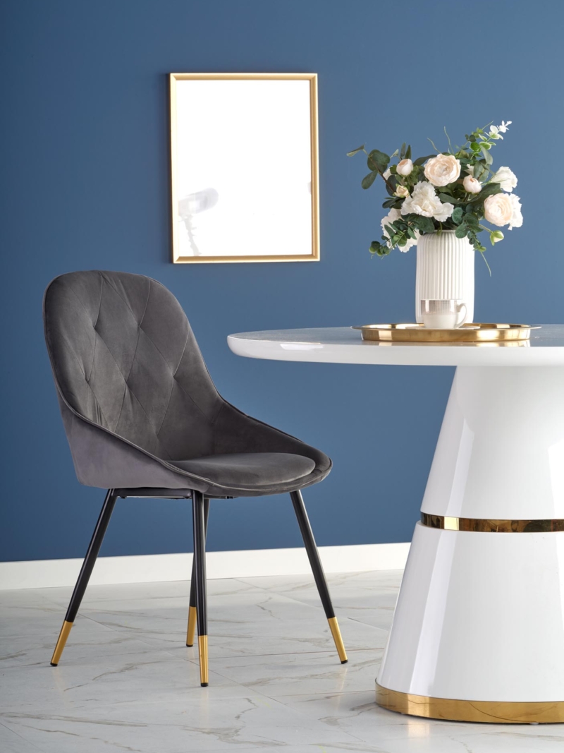 dimensions: o120/76 cm, material: lacquered MDF / chrome steel, color: top – white, leg – white / gold