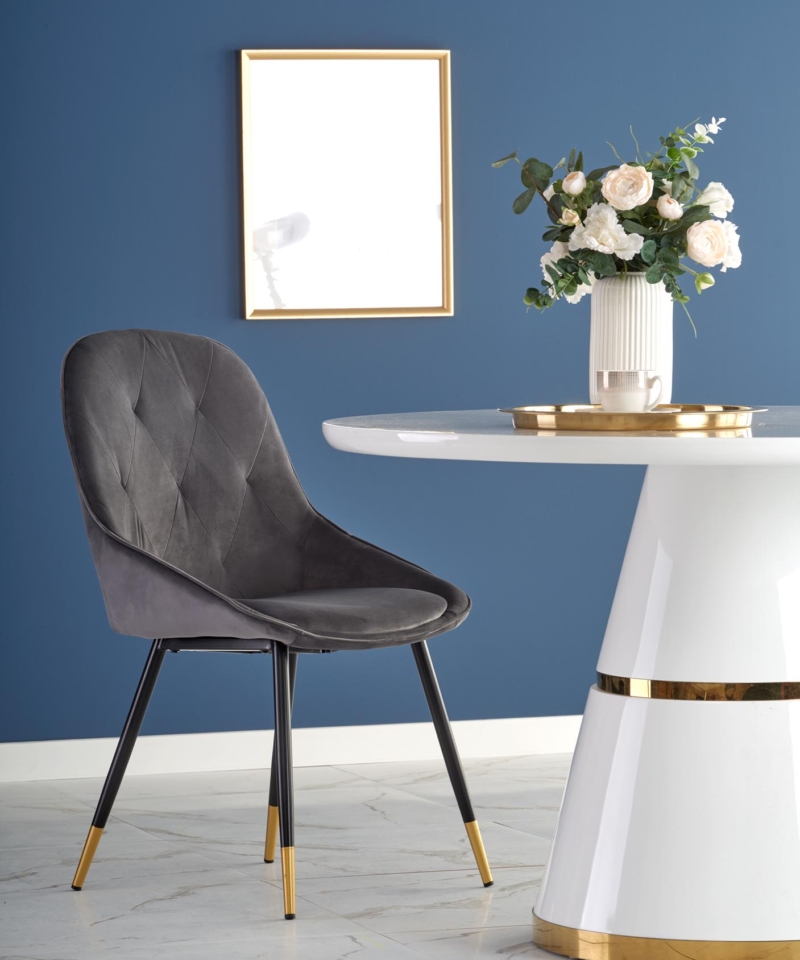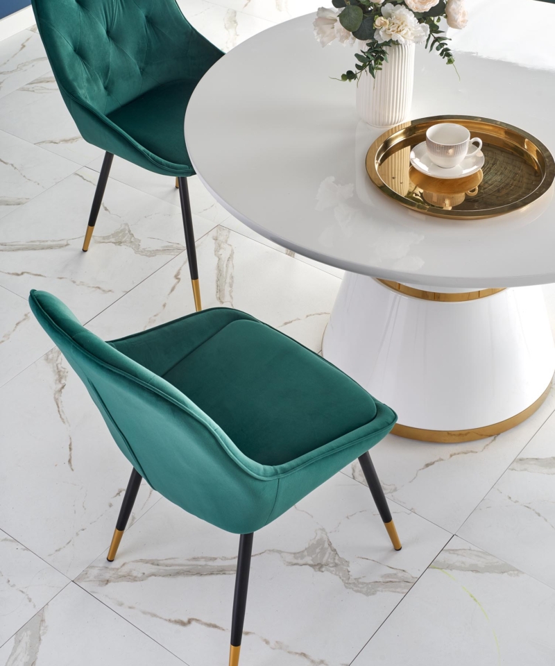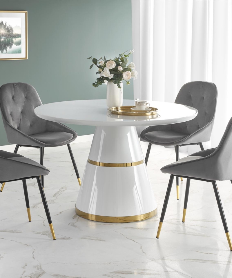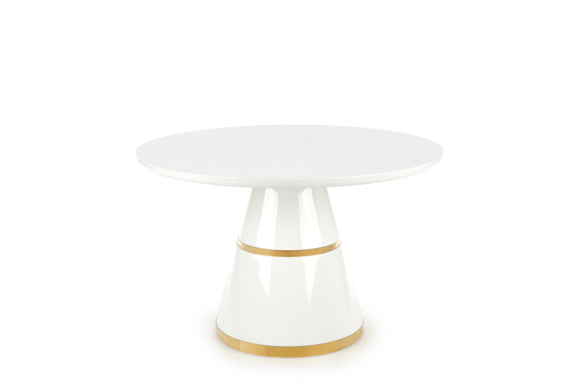 dimensions: o120/76 cm, material: lacquered MDF / chrome steel, color: top – white, leg – white / gold
