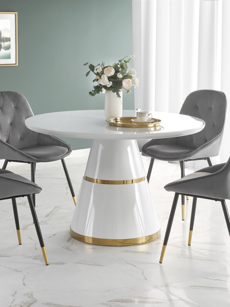 dimensions: o120/76 cm, material: lacquered MDF / chrome steel, color: top – white, leg – white / gold