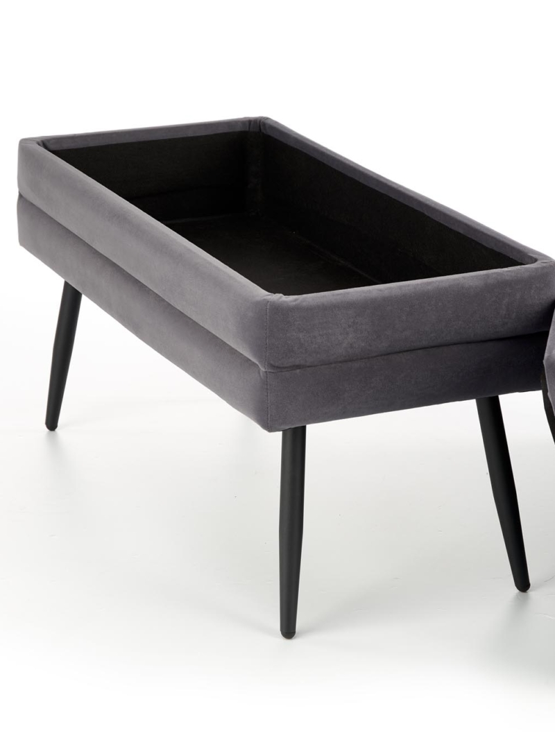 dimensions: 78/42/37 cm, bench with storage function, material: velvet cloth / chrome steel or powder coated steel, color: grey / black