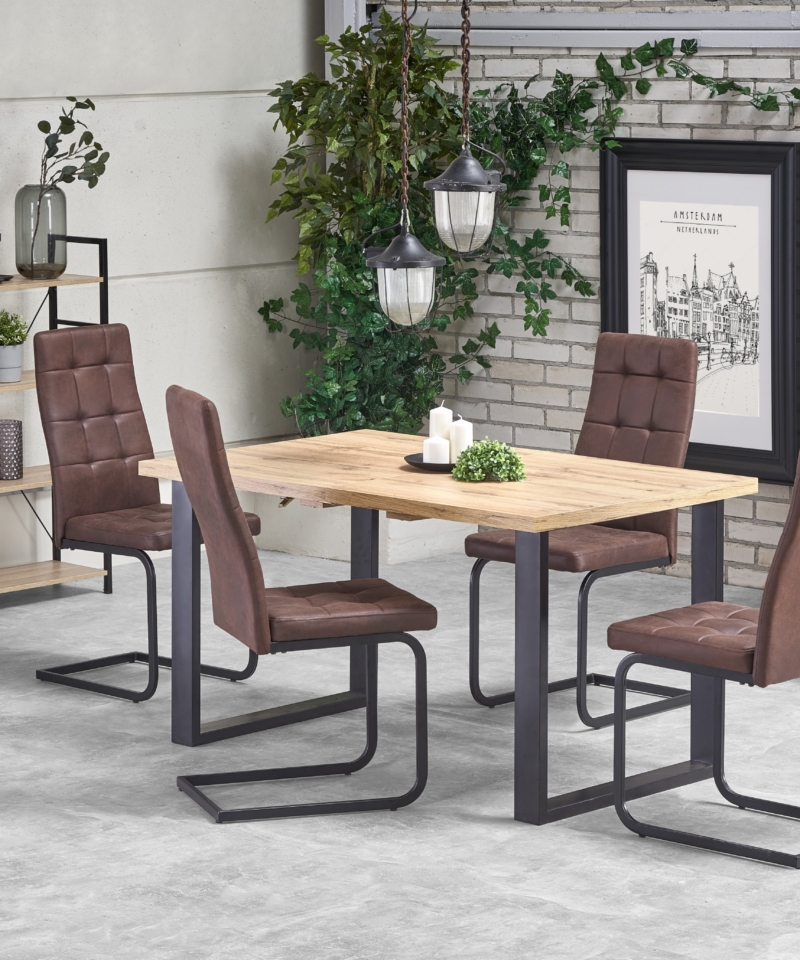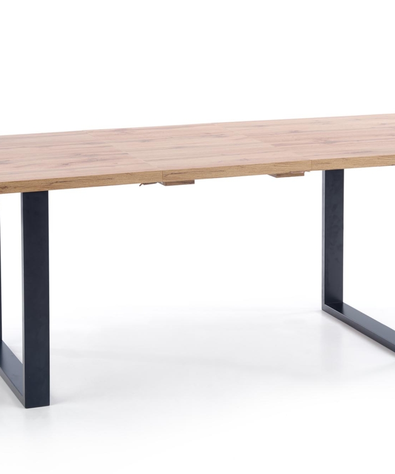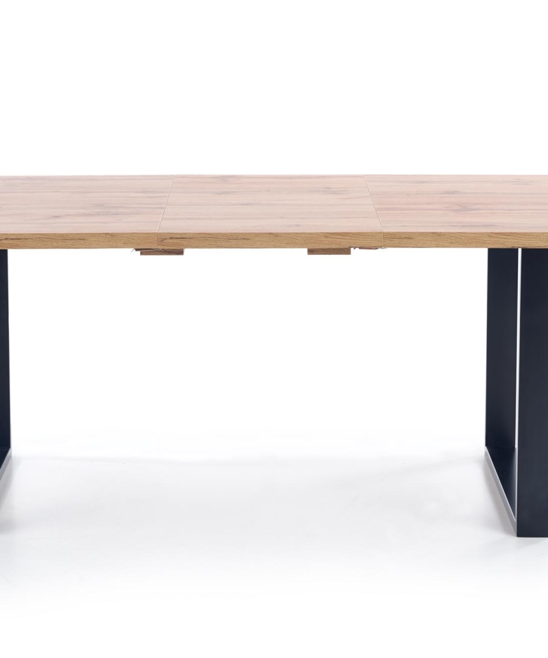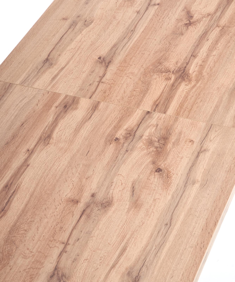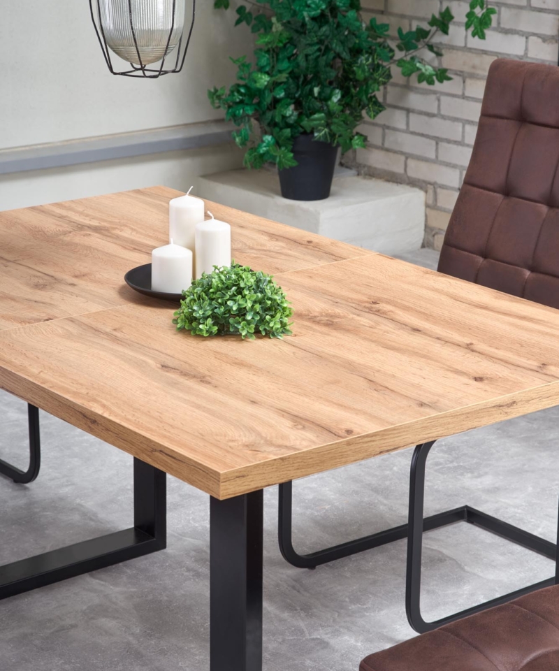dimensions: 135÷185/85/74 cm, extension table, material: top – laminated chipboard, ABS plastic on edges, legs – powder coated steel, color: top – votan oak, legs – black