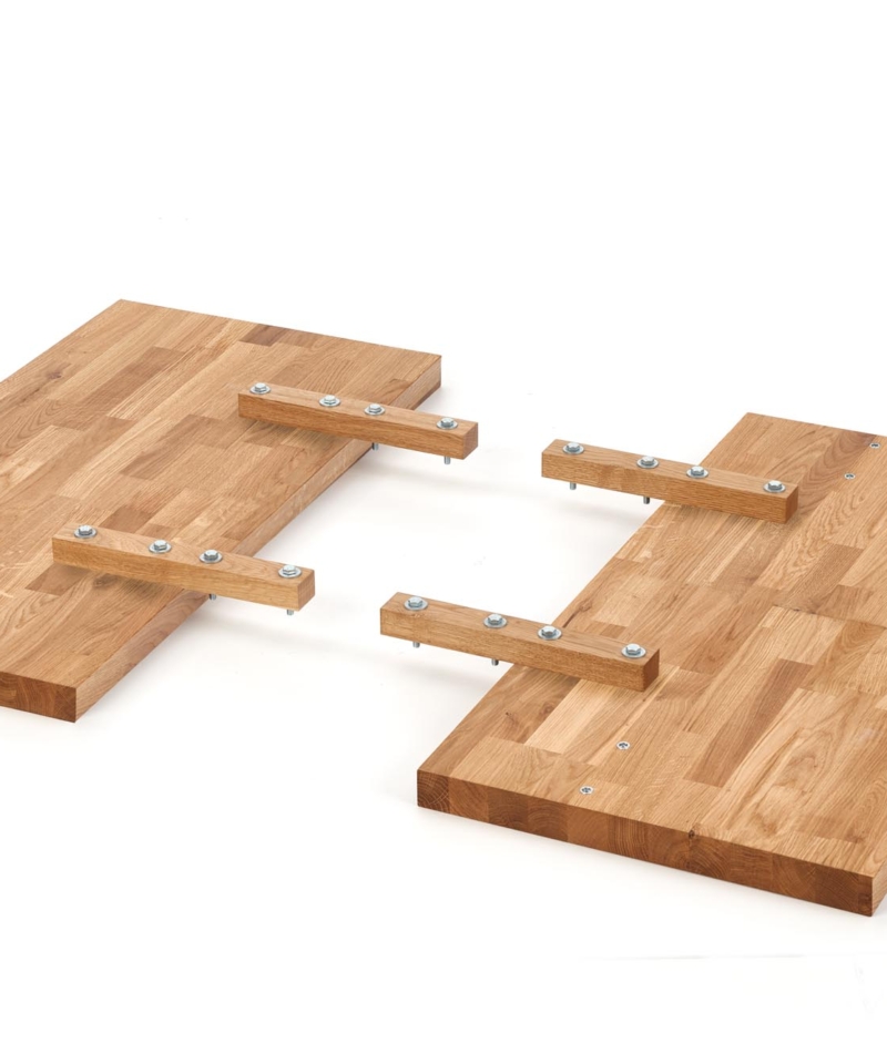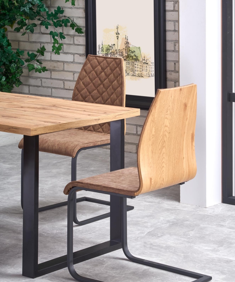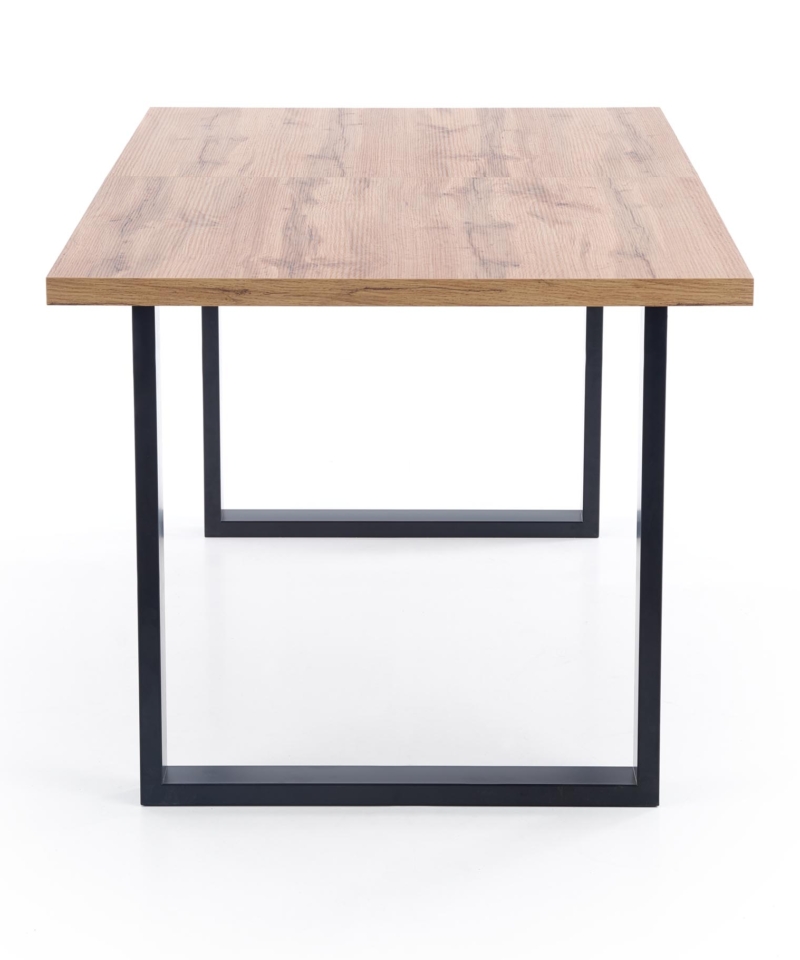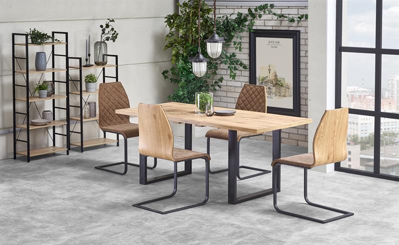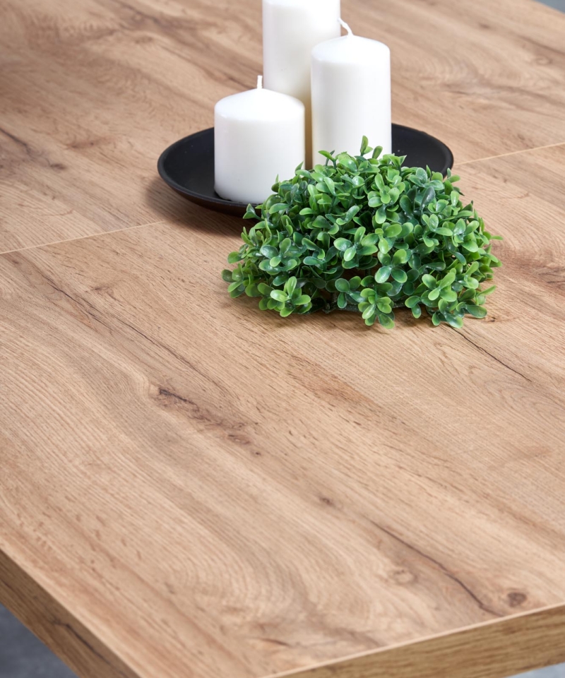 dimensions: 135÷185/85/74 cm, extension table, material: top – laminated chipboard, ABS plastic on edges, legs – powder coated steel, color: top – votan oak, legs – black