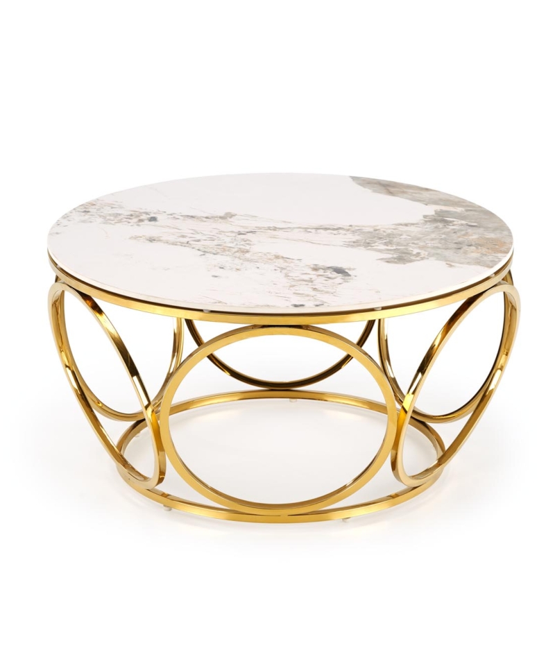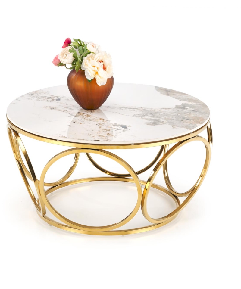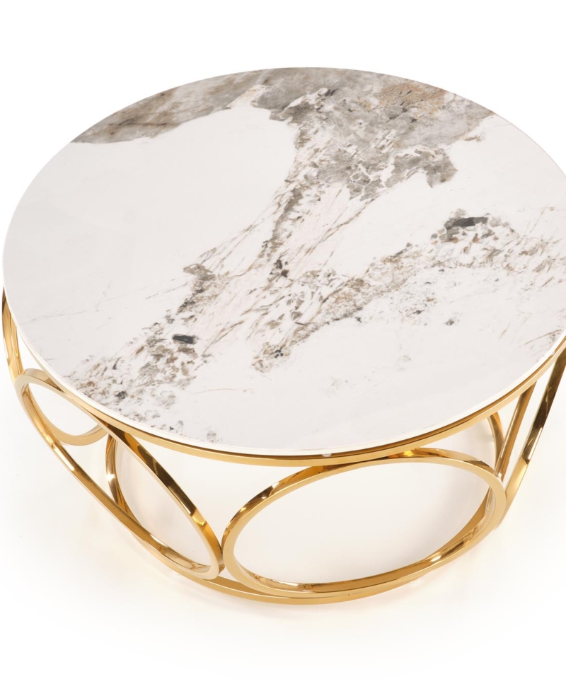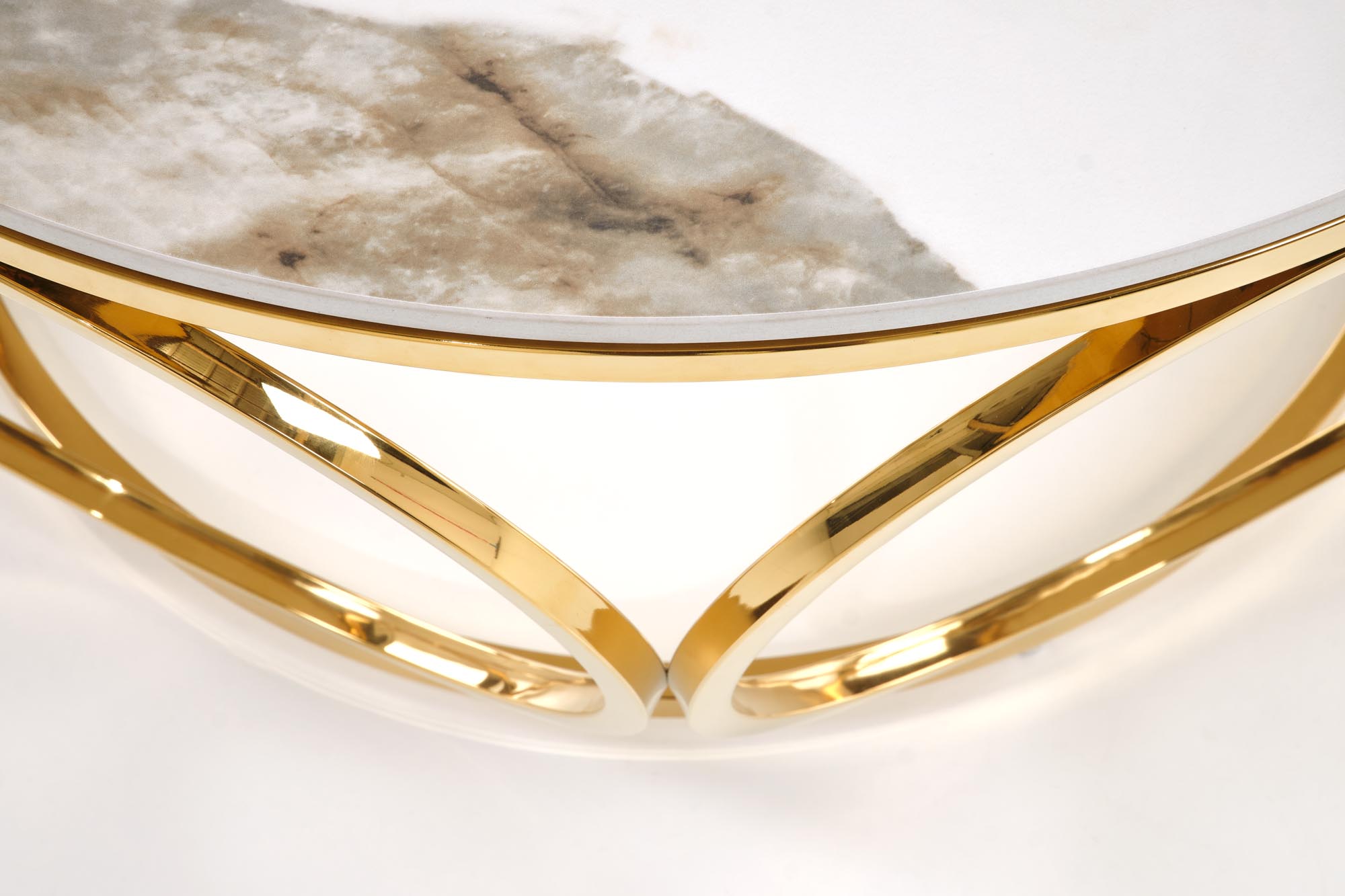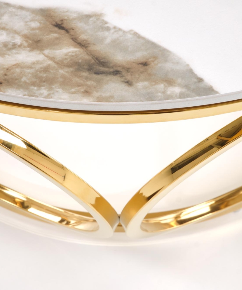 dimensions: 80/44 cm, material: sintered stone / stainless steel, color: white marble / gold