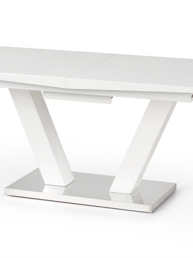 extension table, dimensions: 160-200/90/76 cm, material: lacquered MDF / stainless steel, color: white