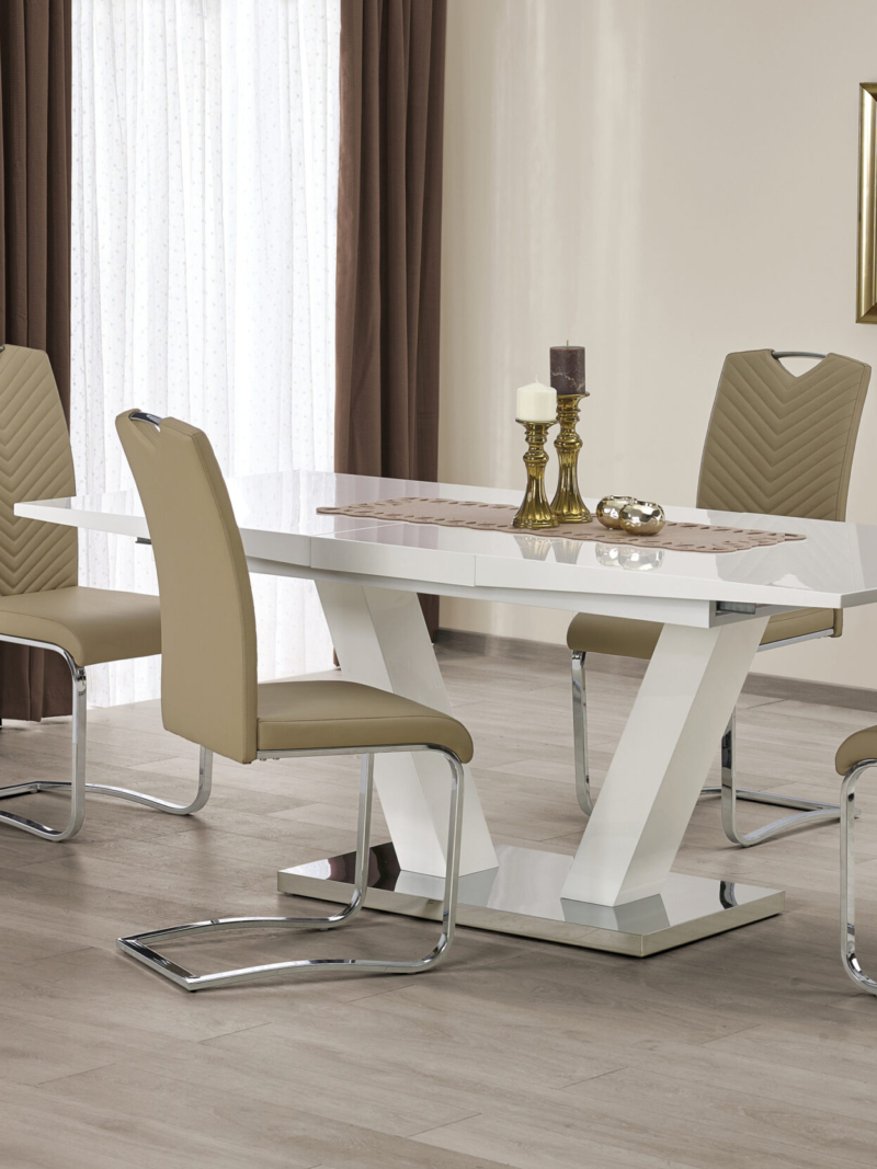 extension table, dimensions: 160-200/90/76 cm, material: lacquered MDF / stainless steel, color: white