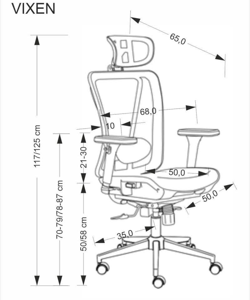 dimensions: 68/65/117-125/50-58 cm, MULTIBLOCK function / adjustable armrests / adjustable headrest / adjustable lumbar support / sliding seat, mesh, color: black