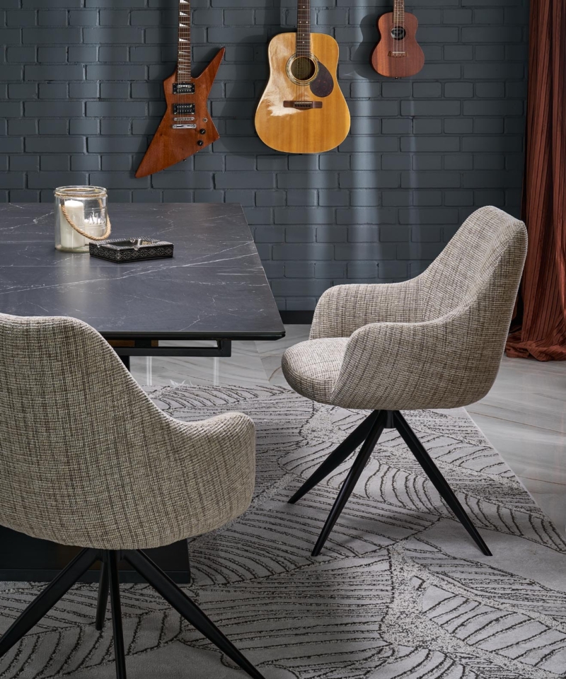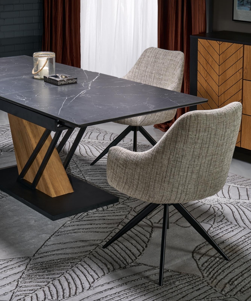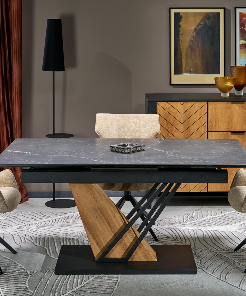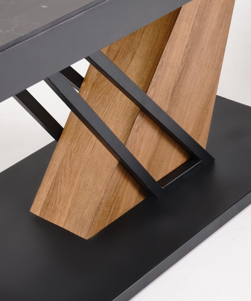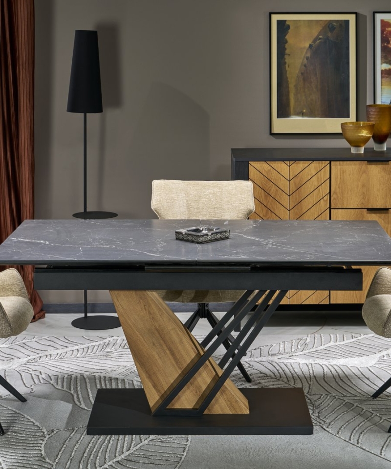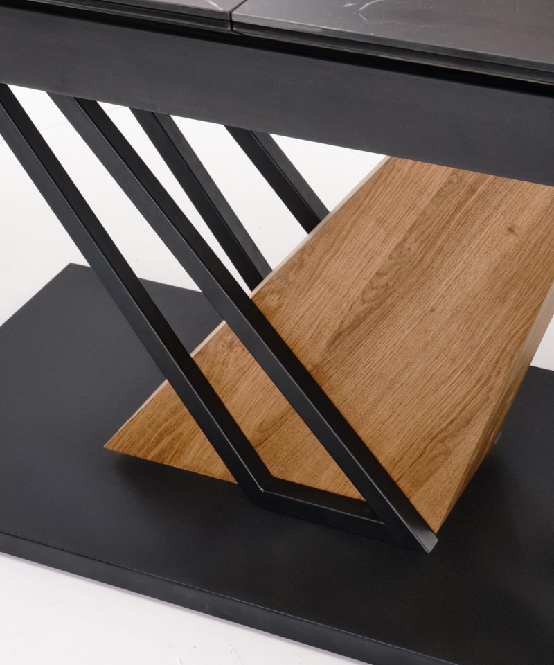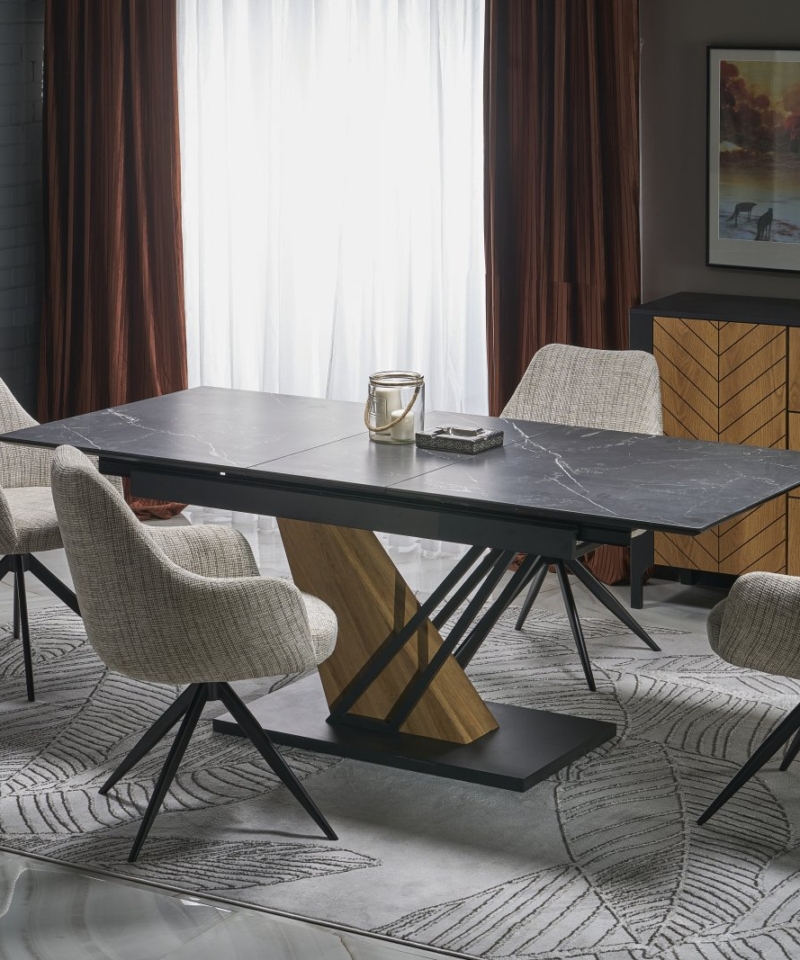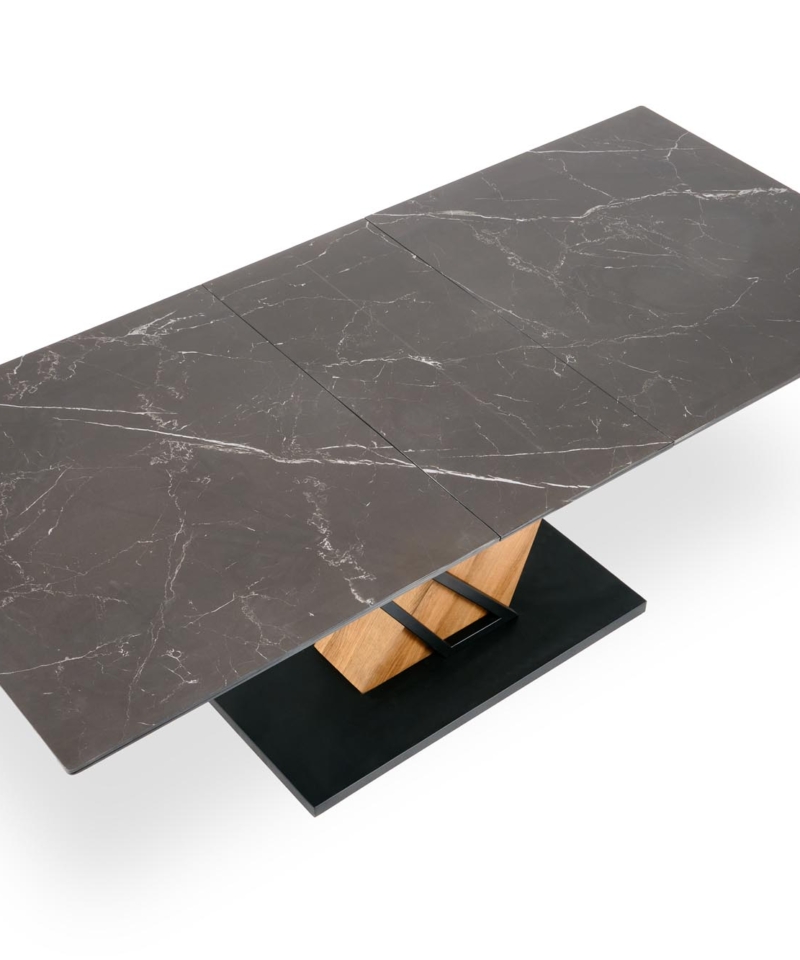 VOLANT 160 extension table, top – black marble, legs – golden oak / black