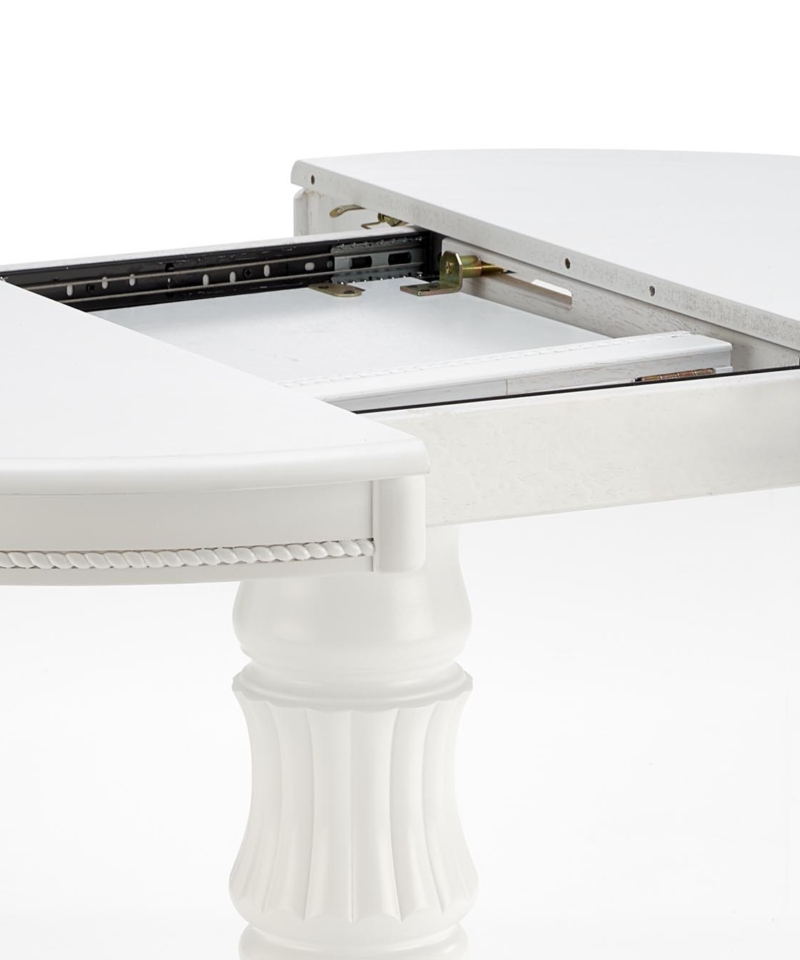 extension table, dimensions: 90÷124/90/75 cm, material: top – MDF board + natural veener, legs – solid wood, color: white