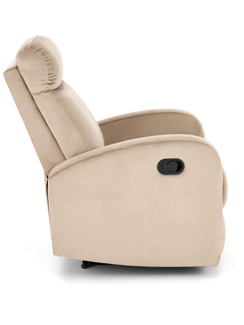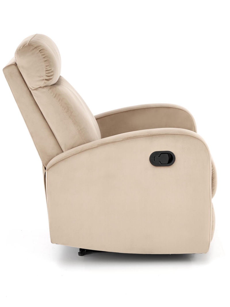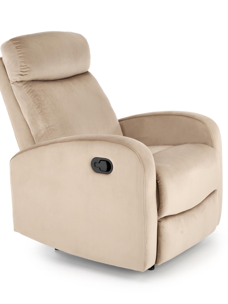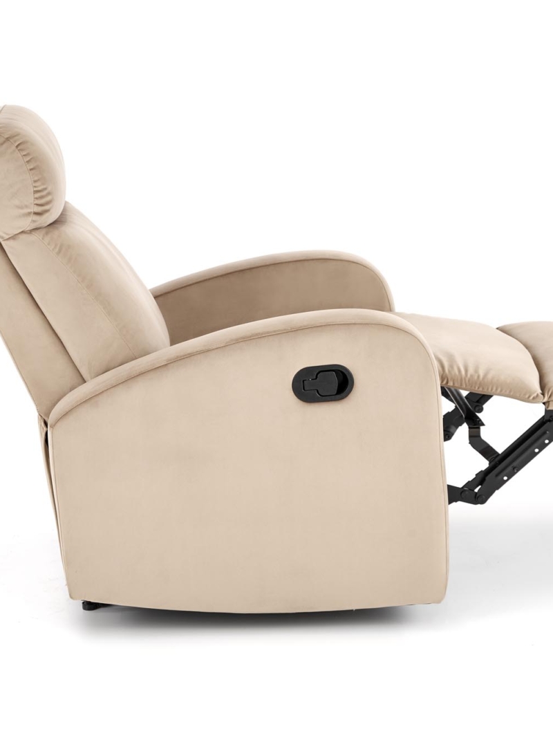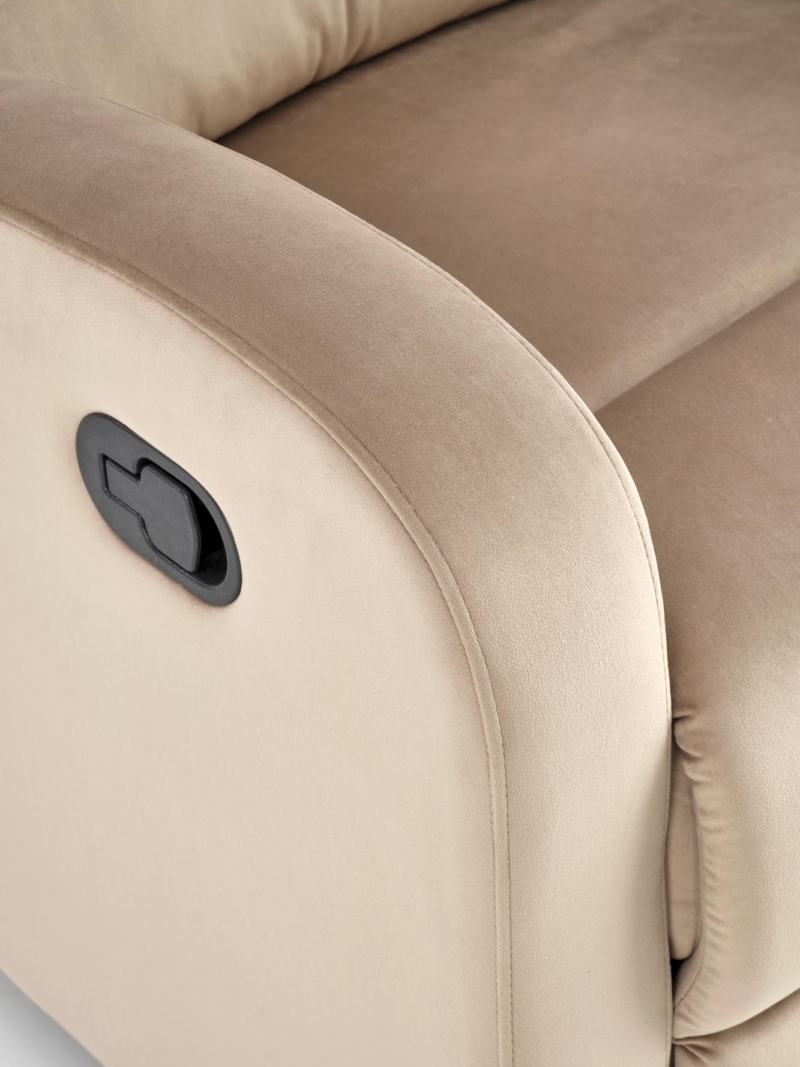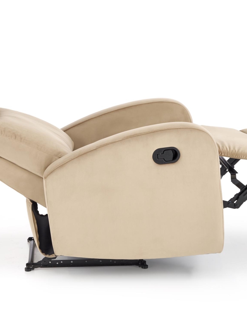 dimensions: XXX cm, recliner with rocking function, material: velvet cloth, colors: beige