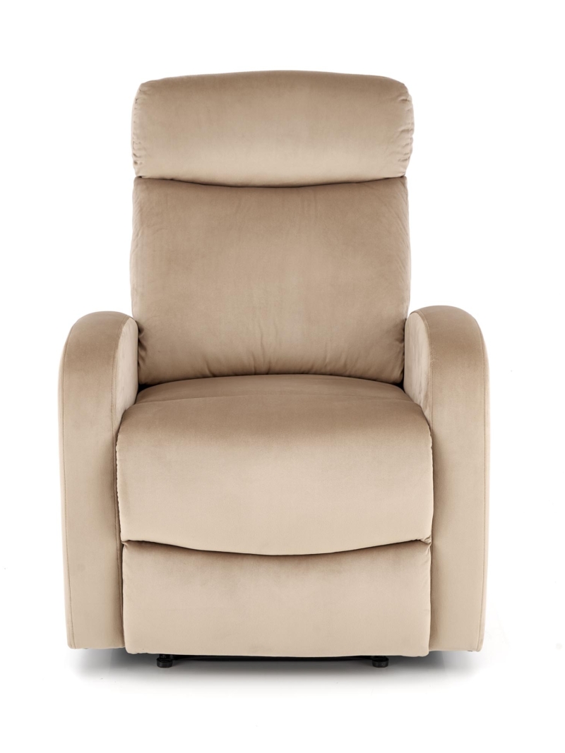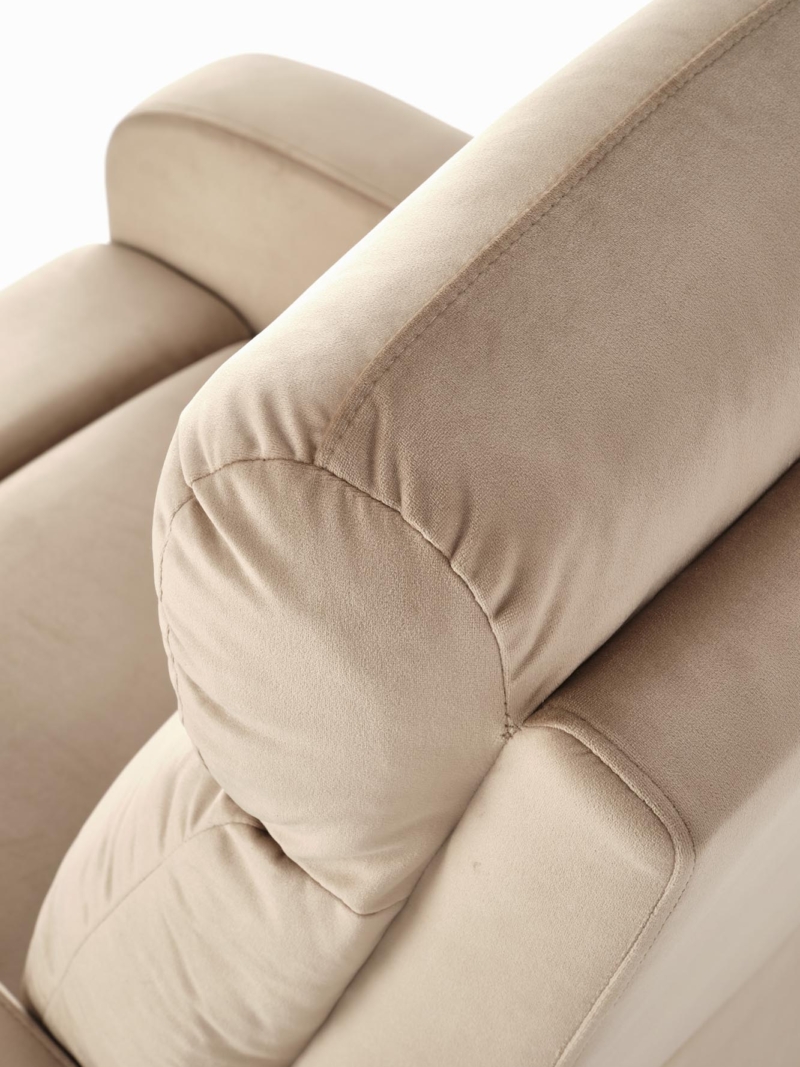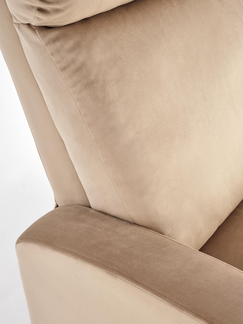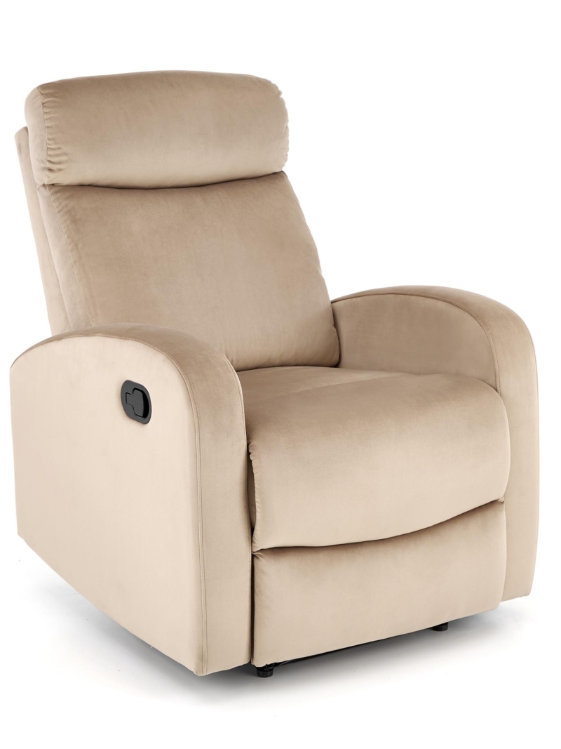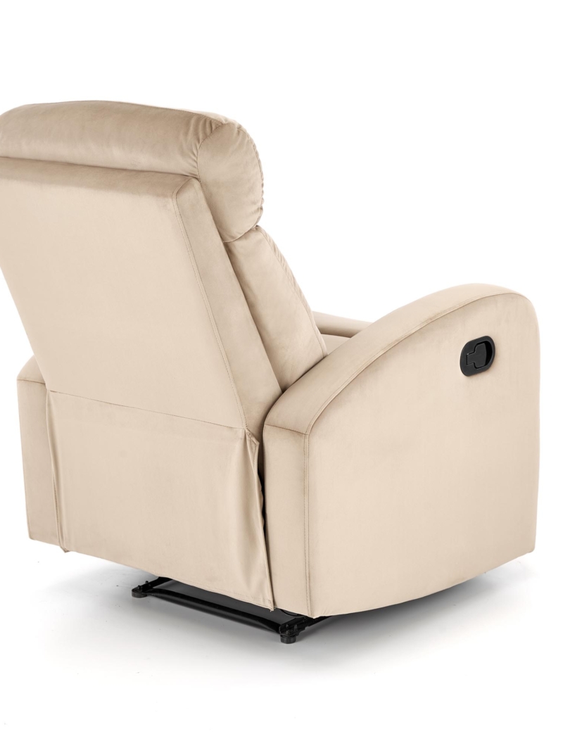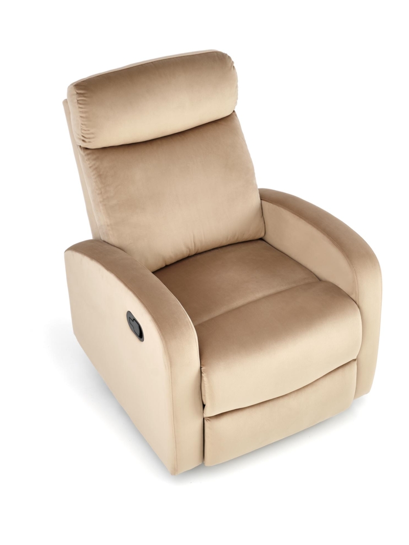 dimensions: XXX cm, recliner with rocking function, material: velvet cloth, colors: beige