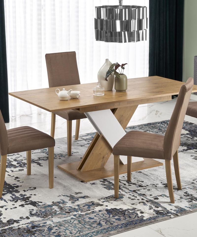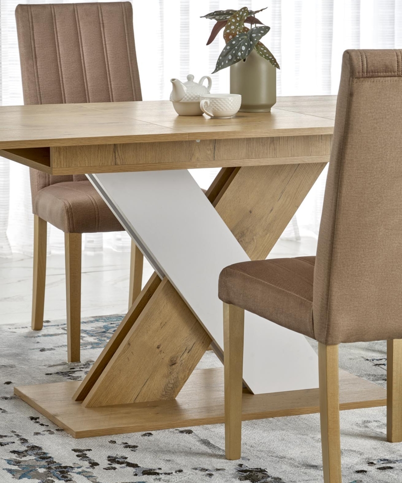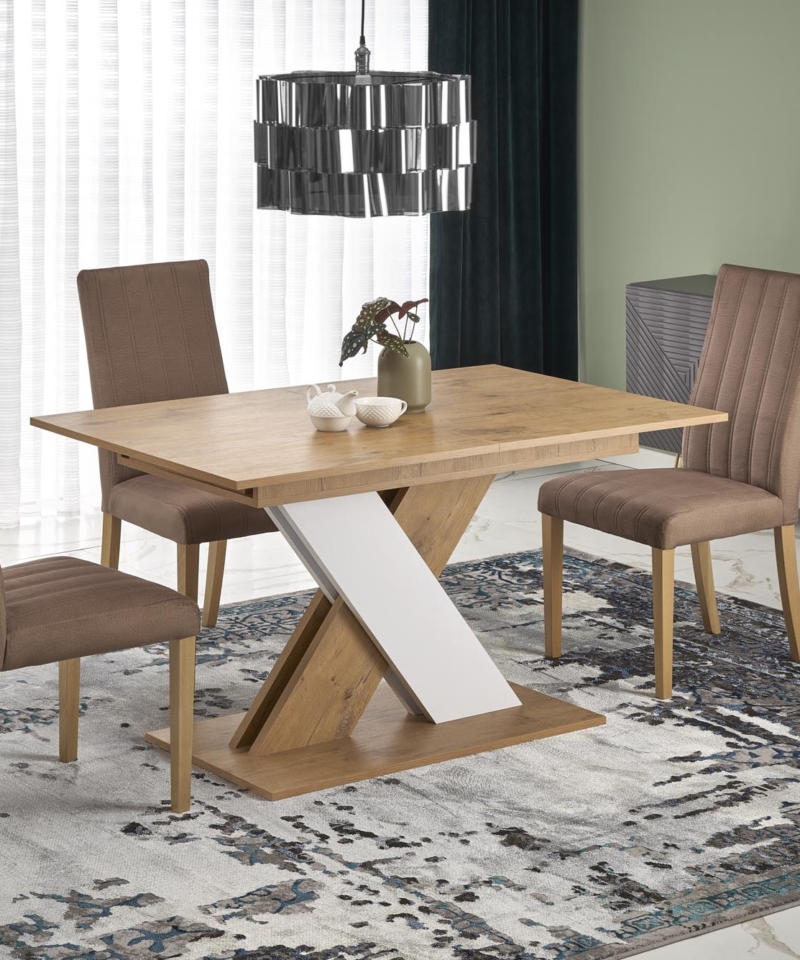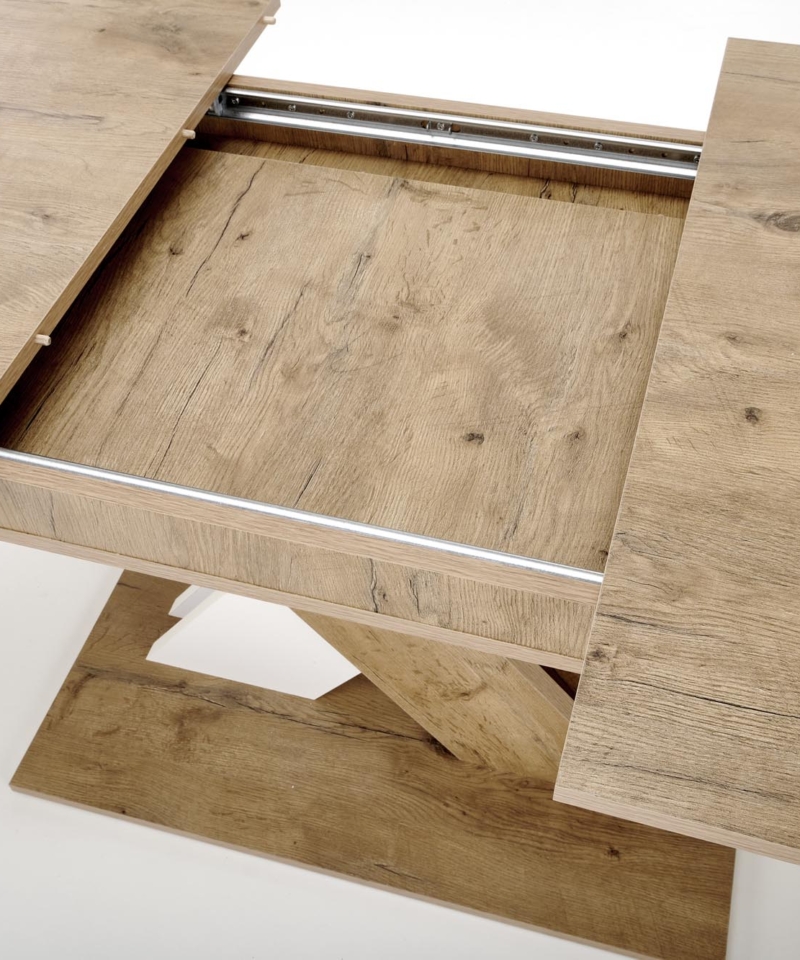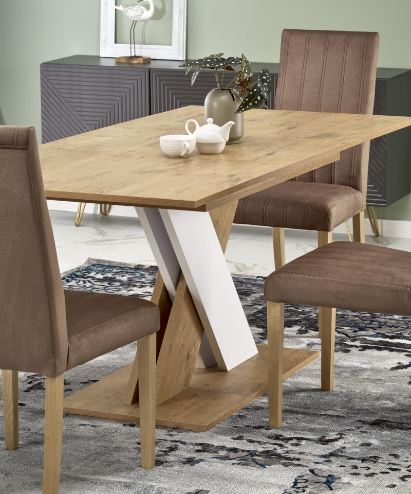 dimensions: 130-175/85/76 cm, extension table, material: laminated chipboard, color: lancelot oak / white