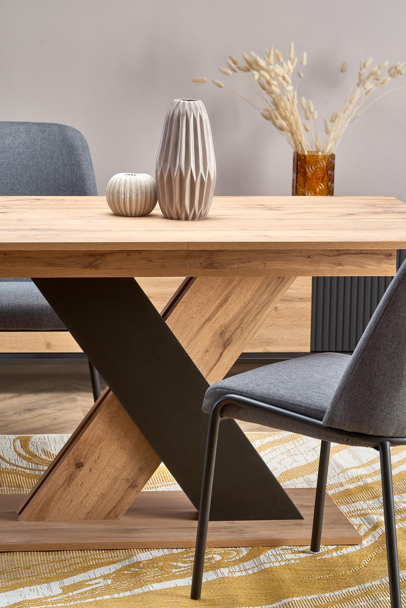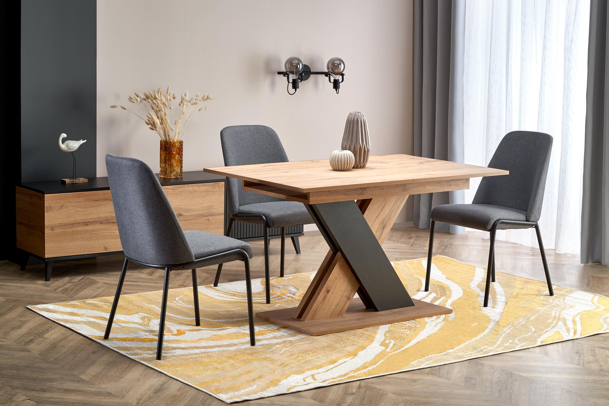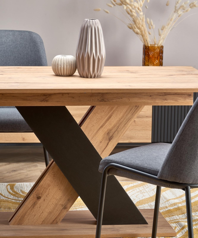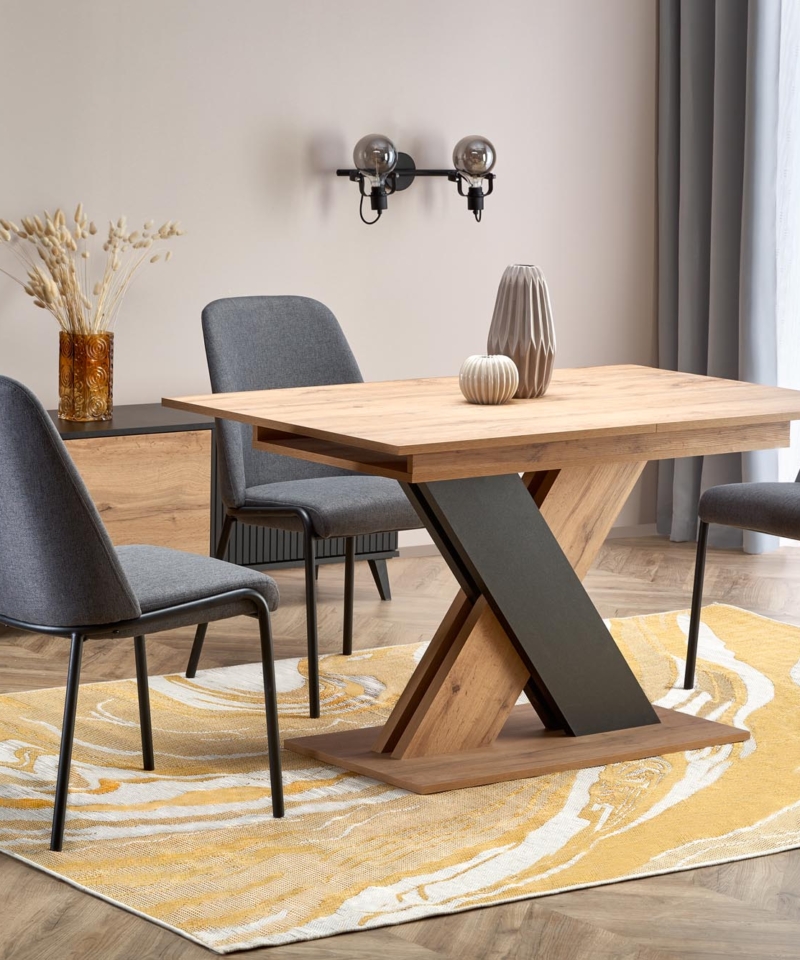dimensions: 130-175/85/76 cm, extension table, material: laminated chipboard, color: wotan oak / black