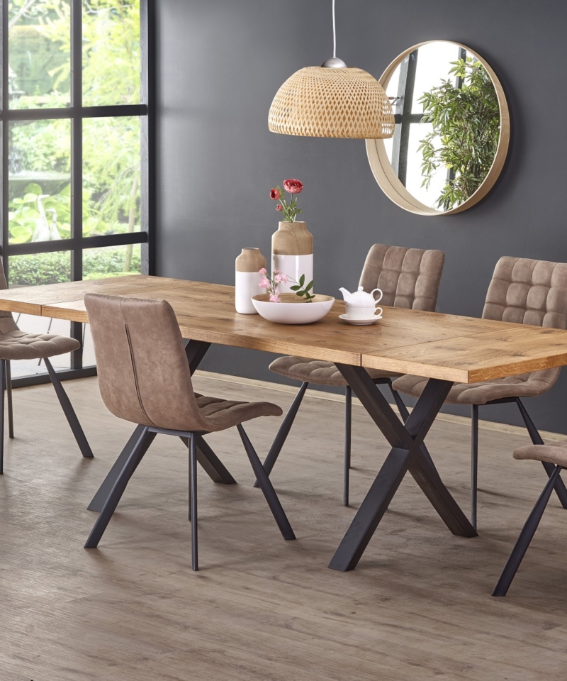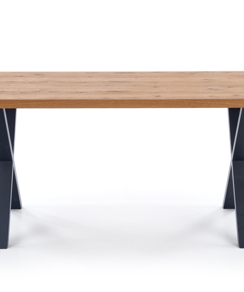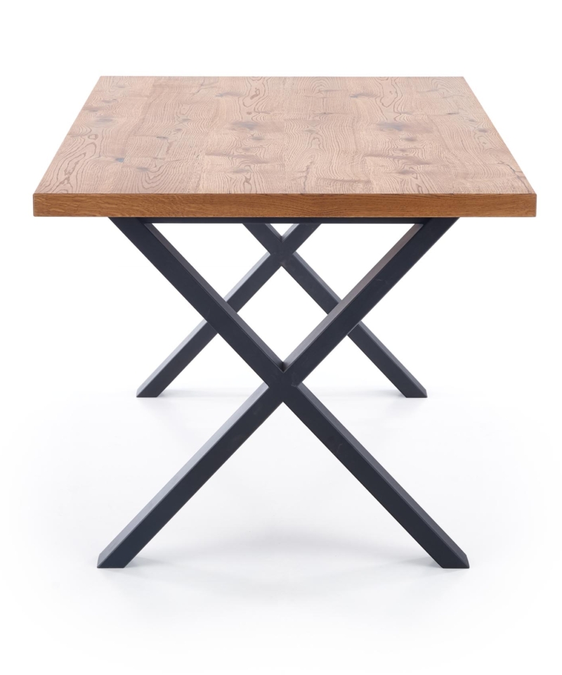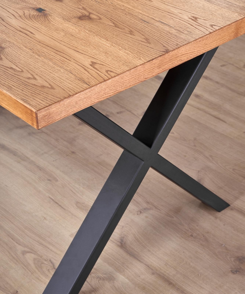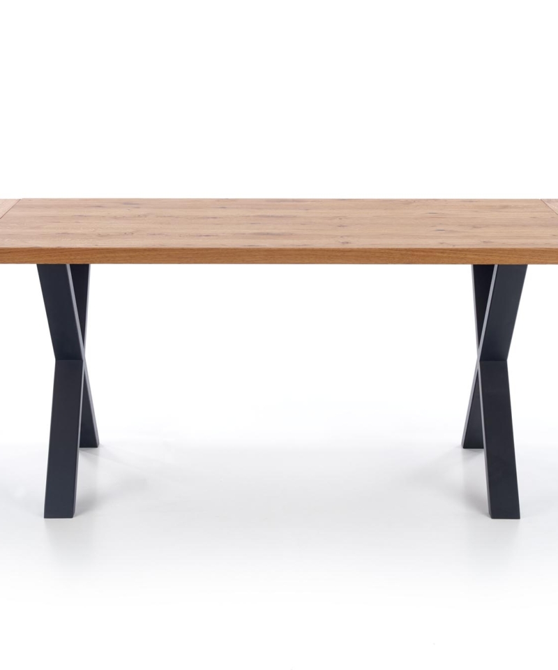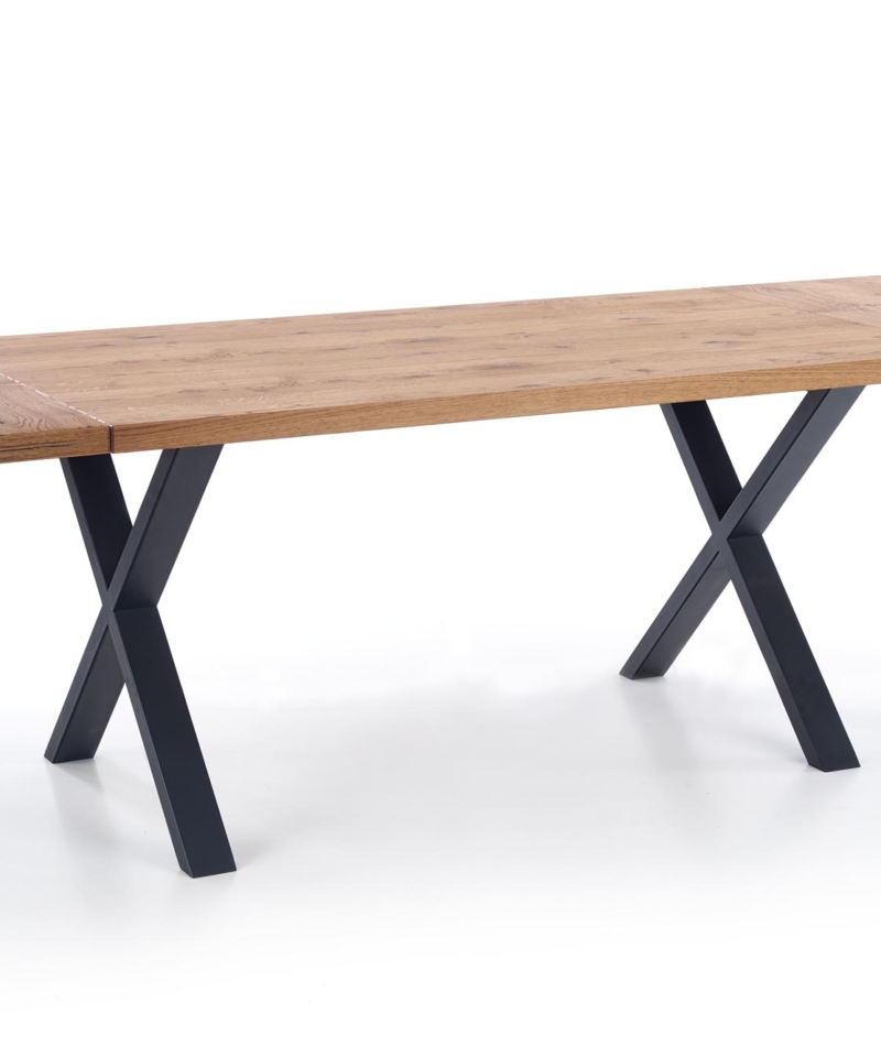 dimensions: 160÷250/90/76 cm, extension table, material: top – vaneered board, solid wood on edges, legs – powder coated steel, color: top – light oak, legs – black