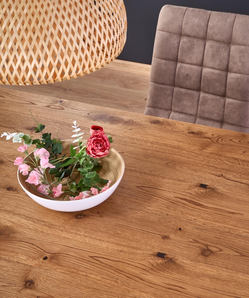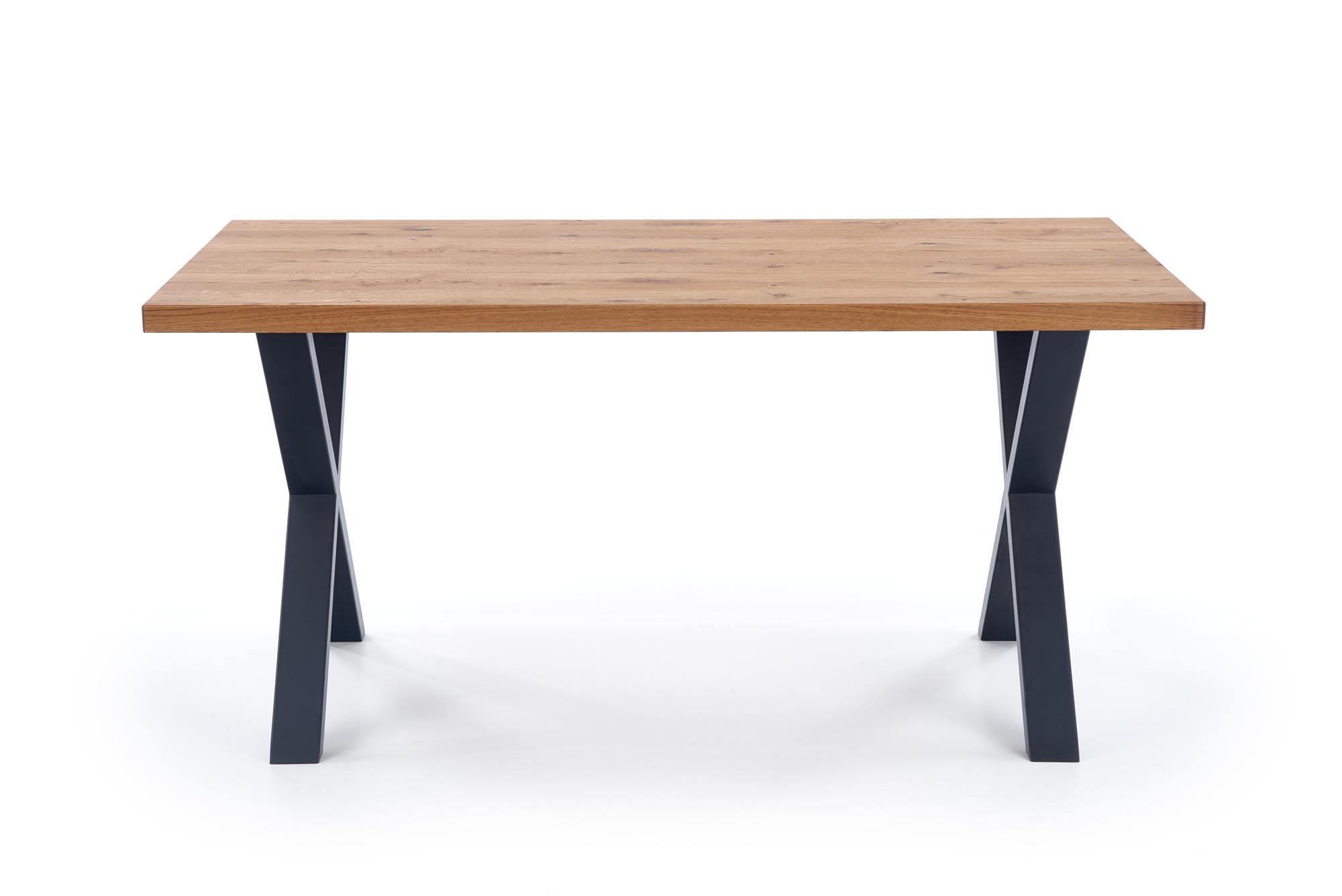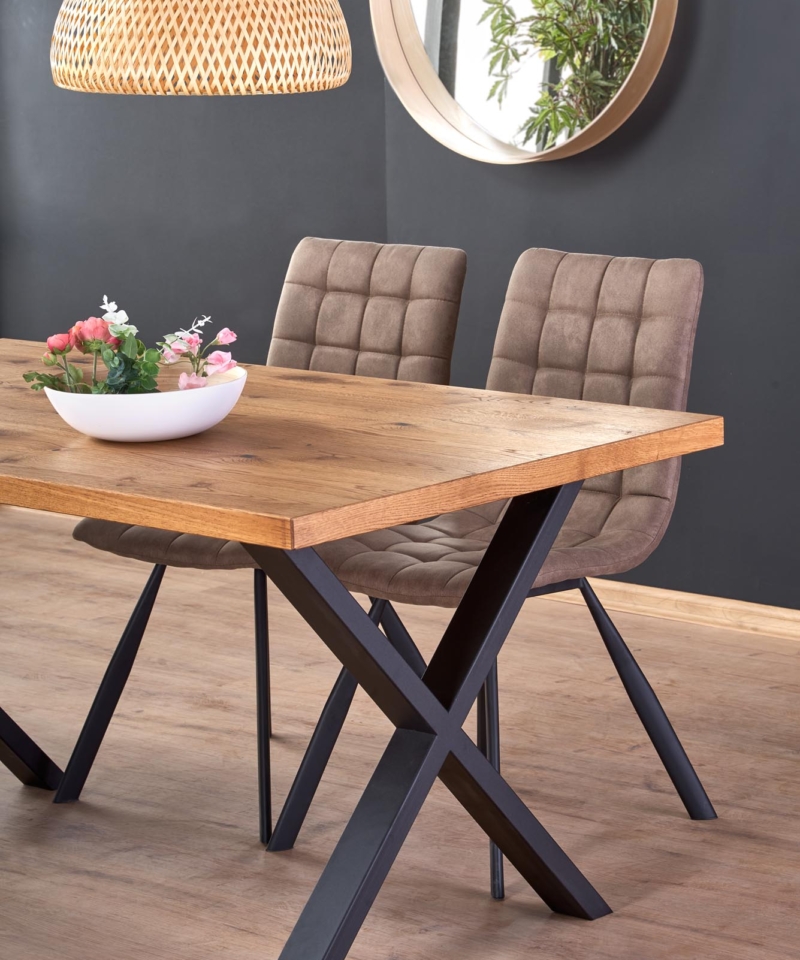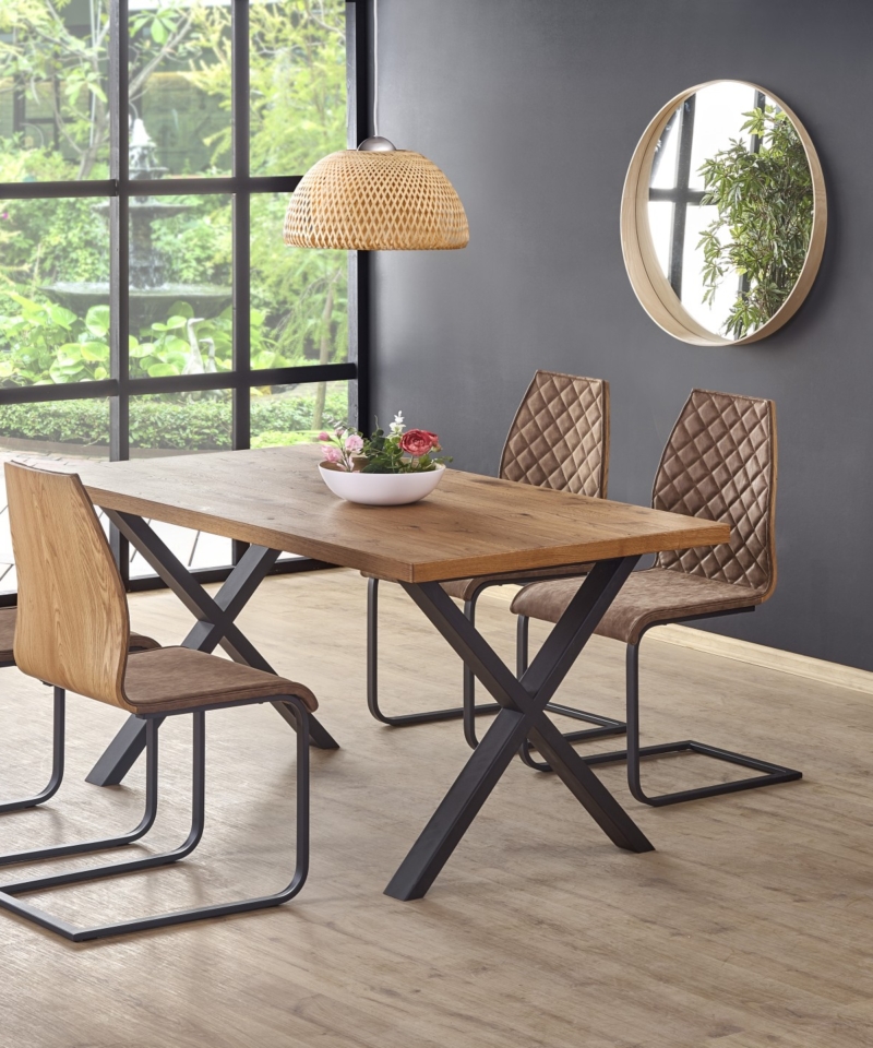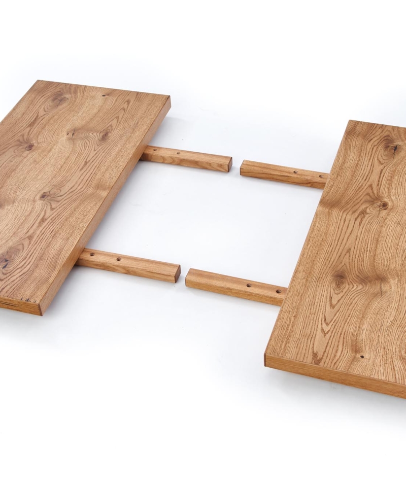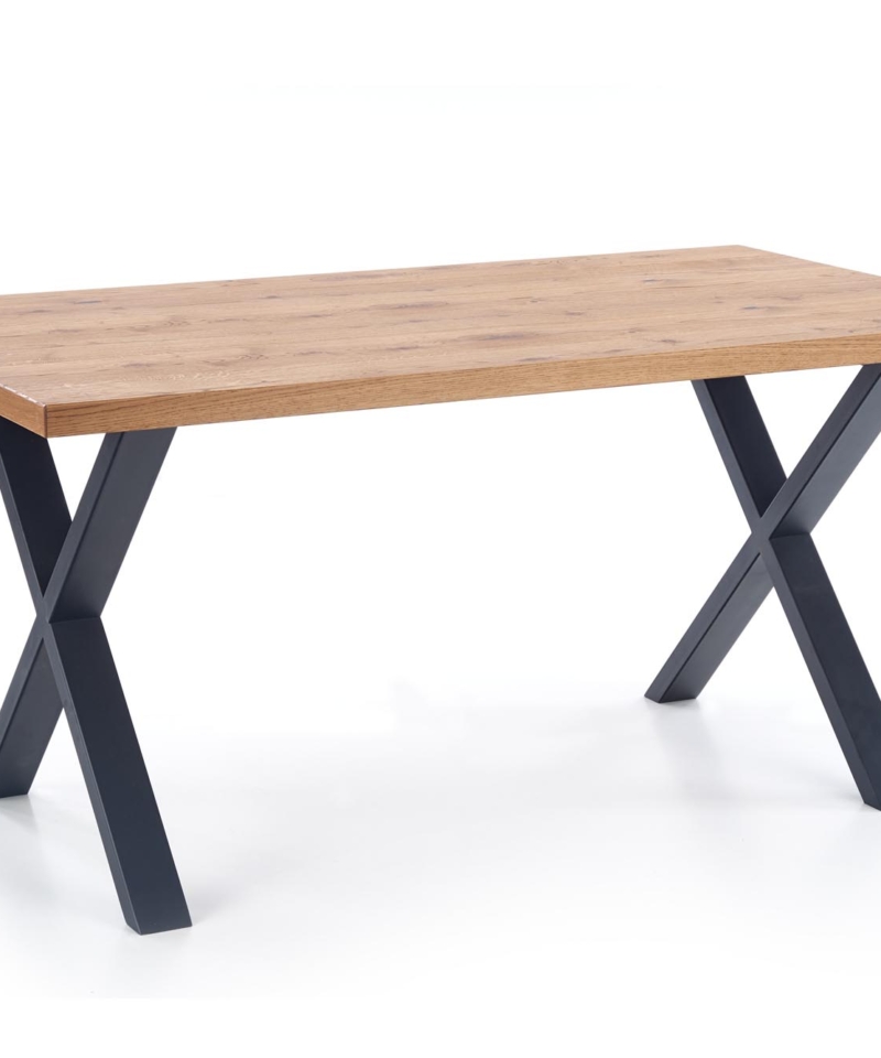 dimensions: 160÷250/90/76 cm, extension table, material: top – vaneered board, solid wood on edges, legs – powder coated steel, color: top – light oak, legs – black