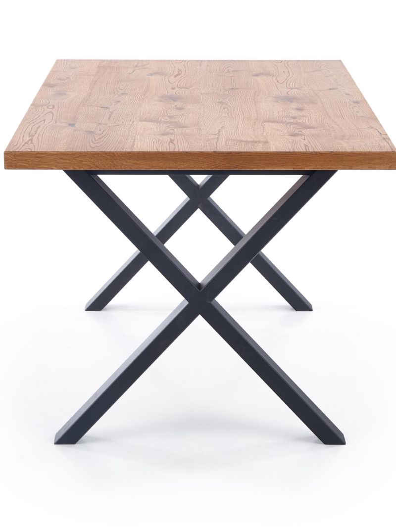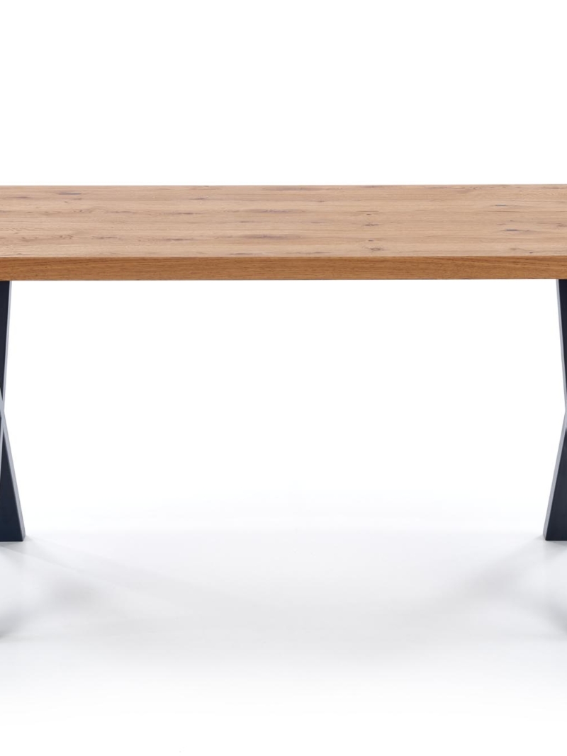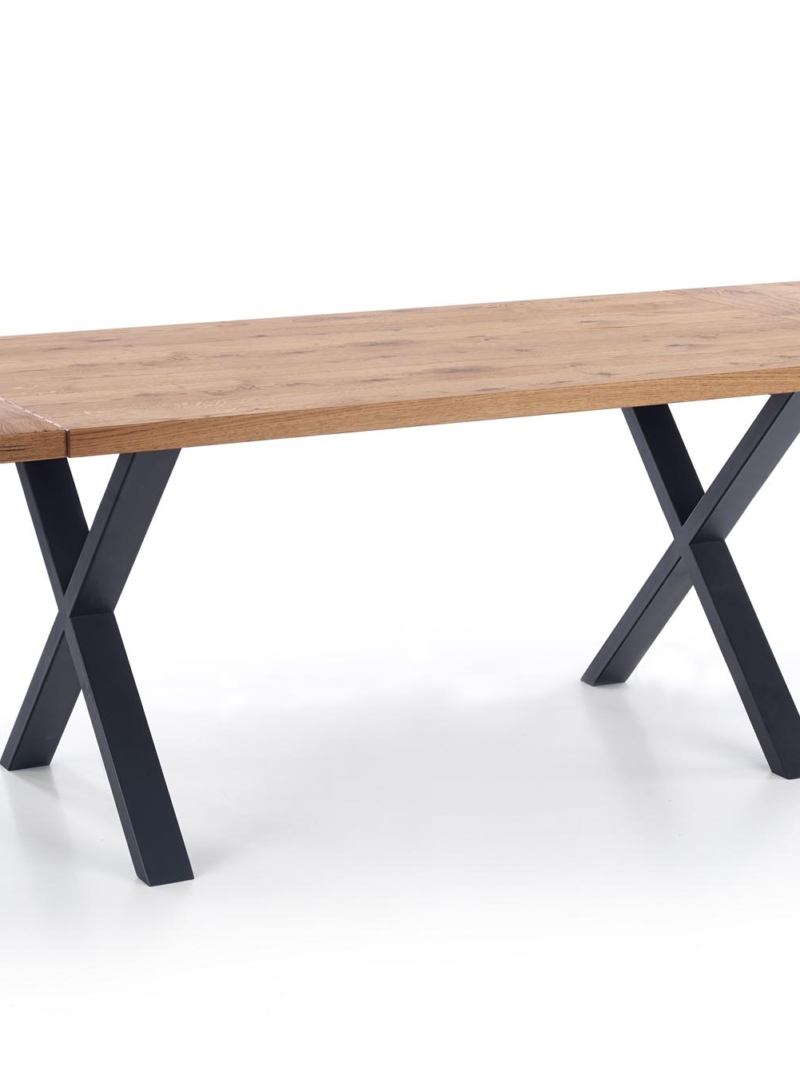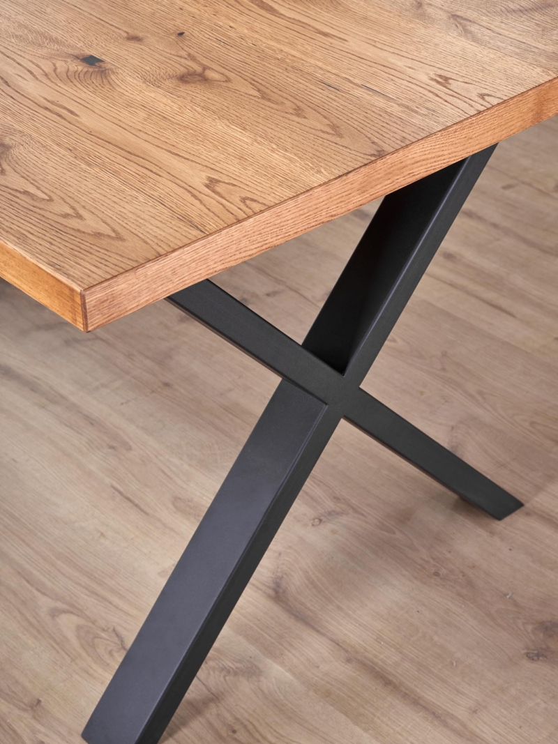 dimensions: 160÷250/90/76 cm, extension table, material: top – vaneered board, solid wood on edges, legs – powder coated steel, color: top – light oak, legs – black