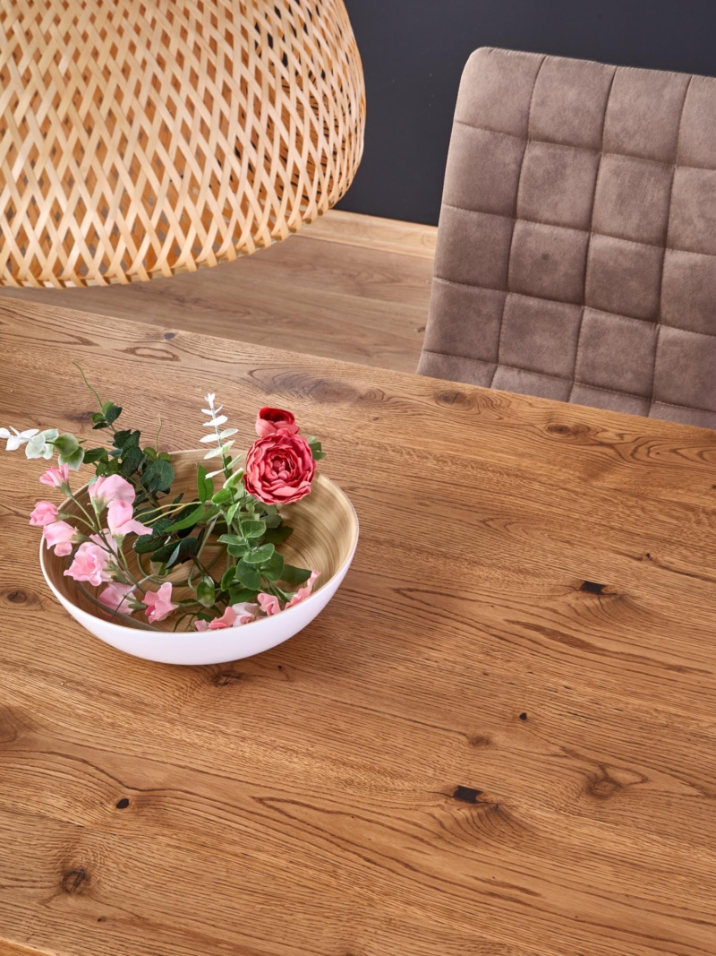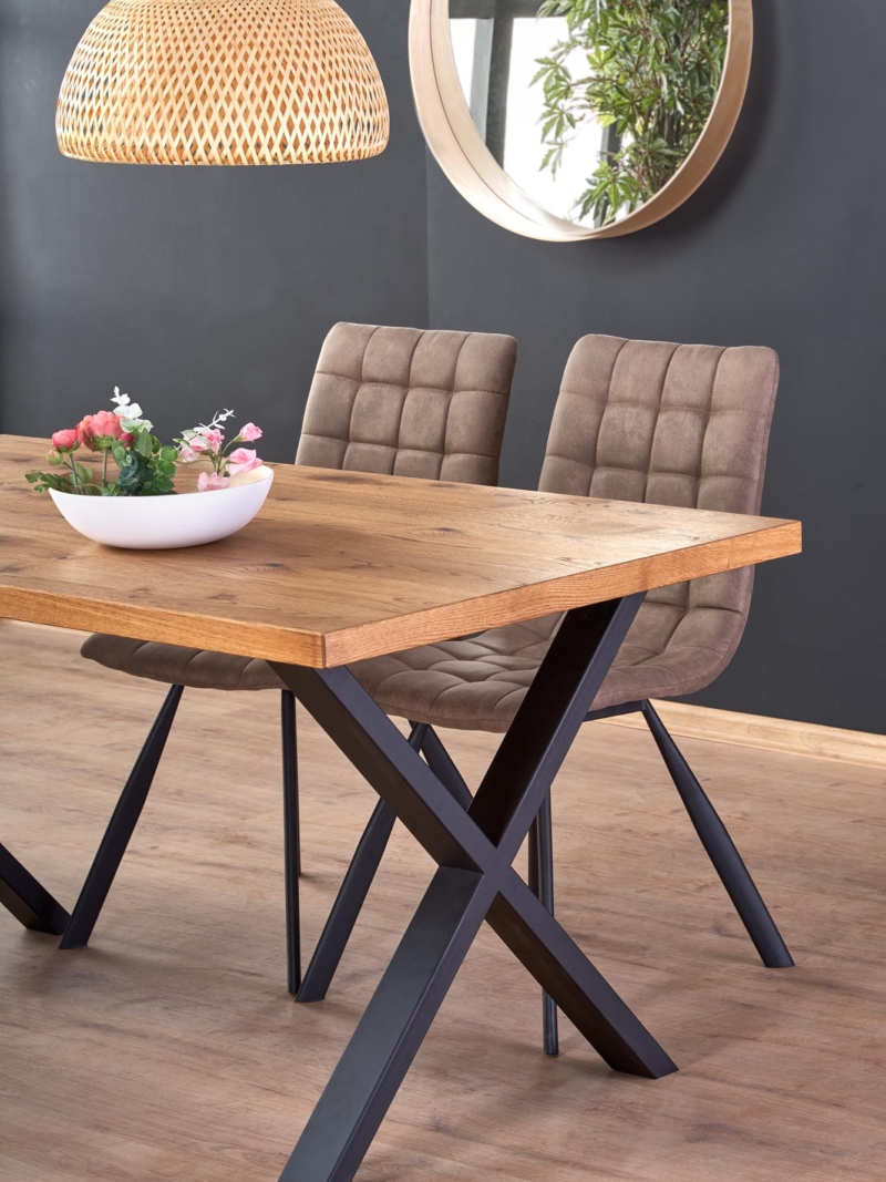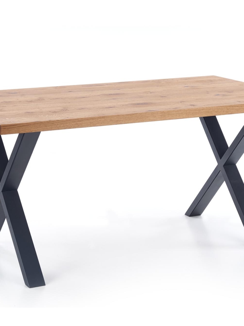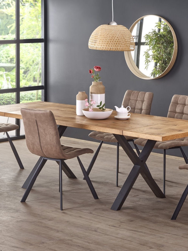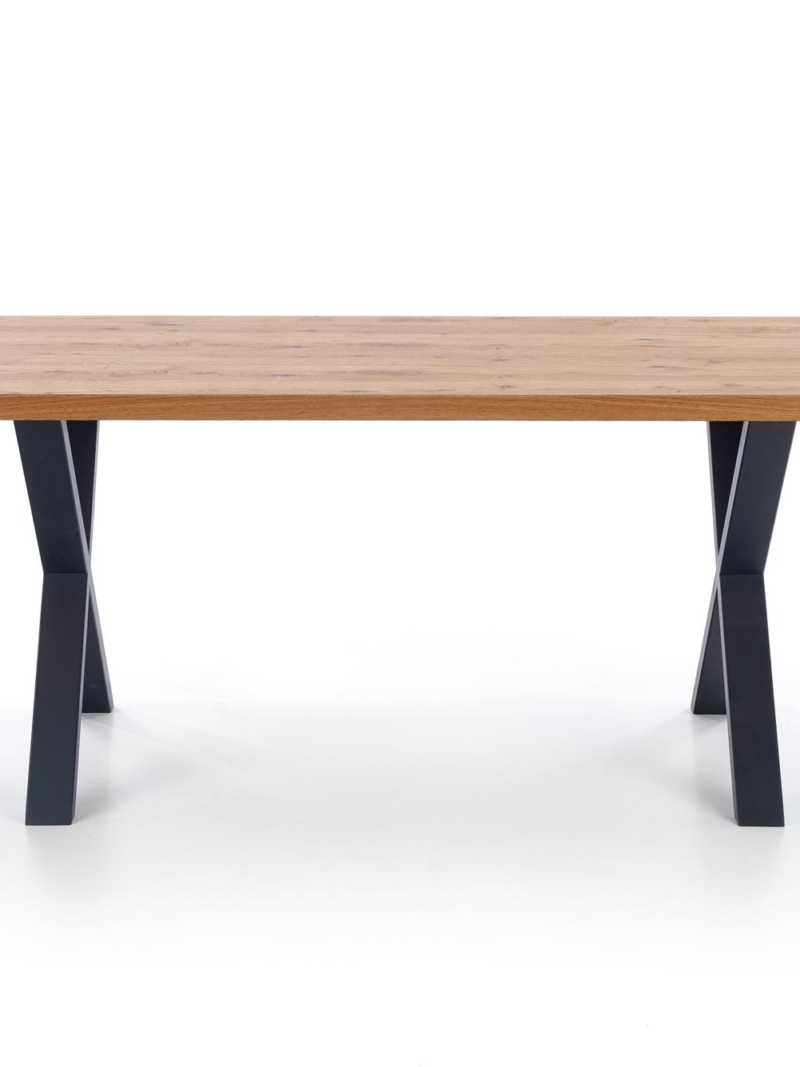 dimensions: 160÷250/90/76 cm, extension table, material: top – vaneered board, solid wood on edges, legs – powder coated steel, color: top – light oak, legs – black