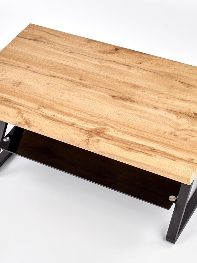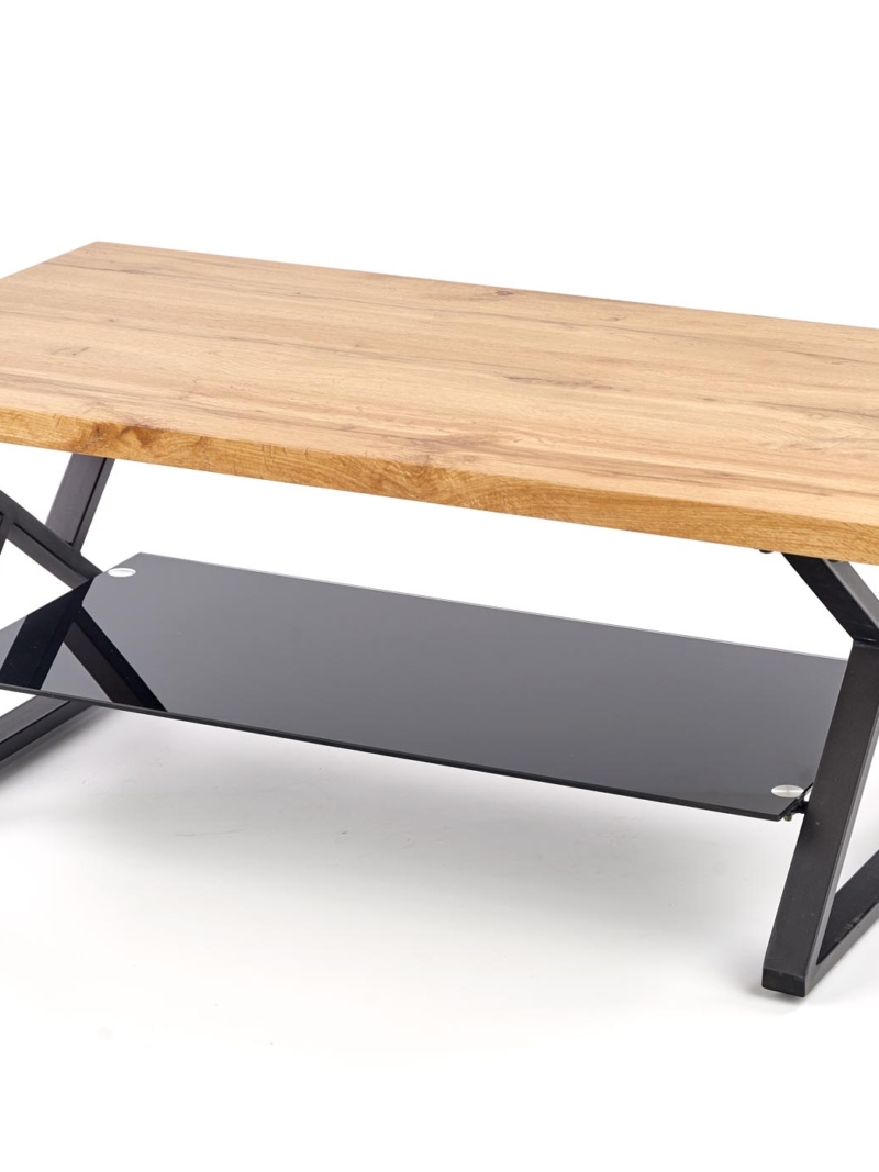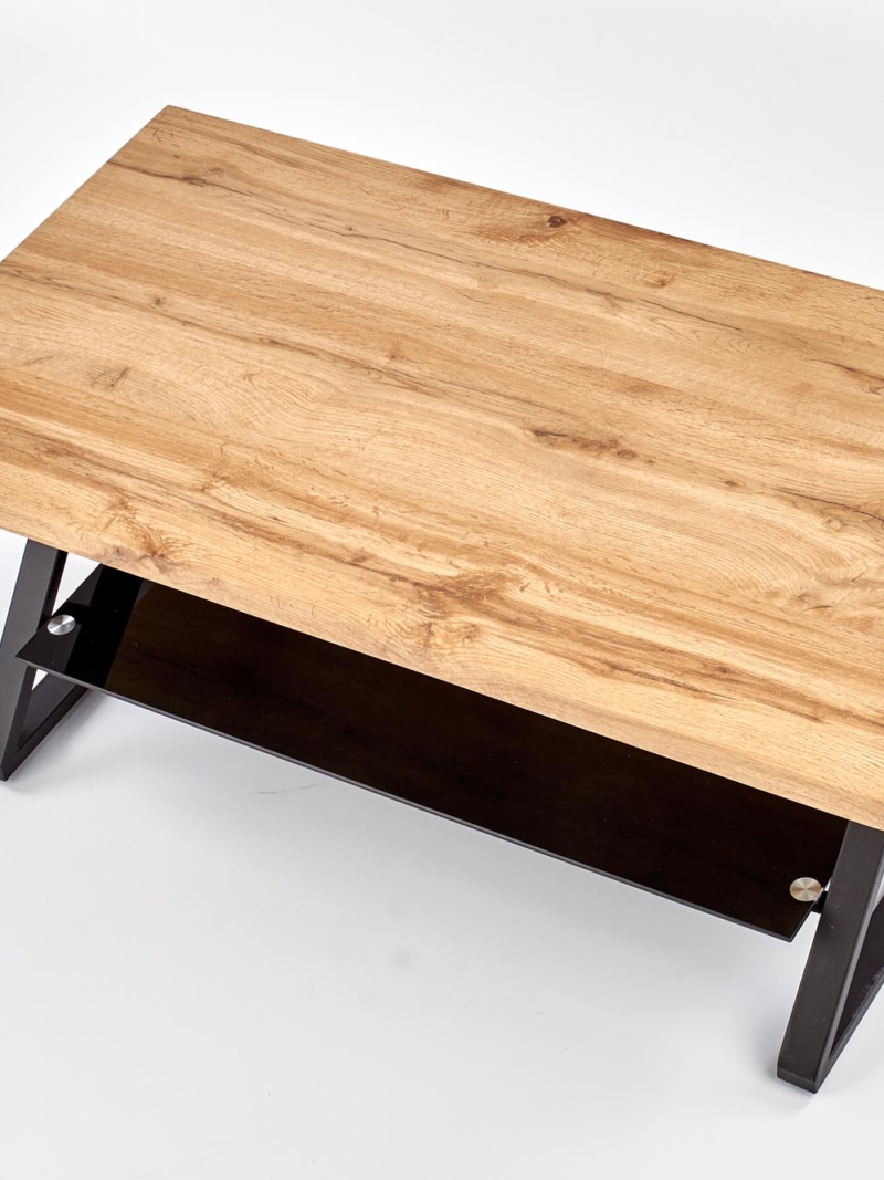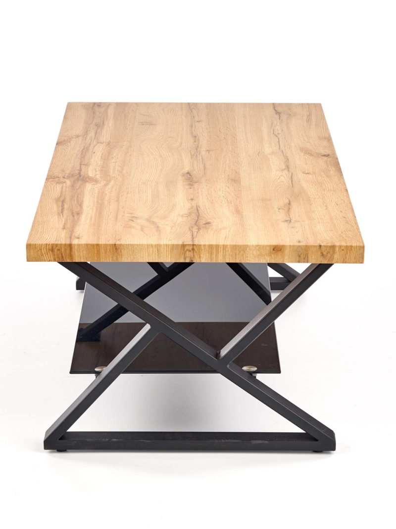 dimensions: 110/60/45 cm, material: laminated MDF / glass / powder coated steel, color: natural oak / black